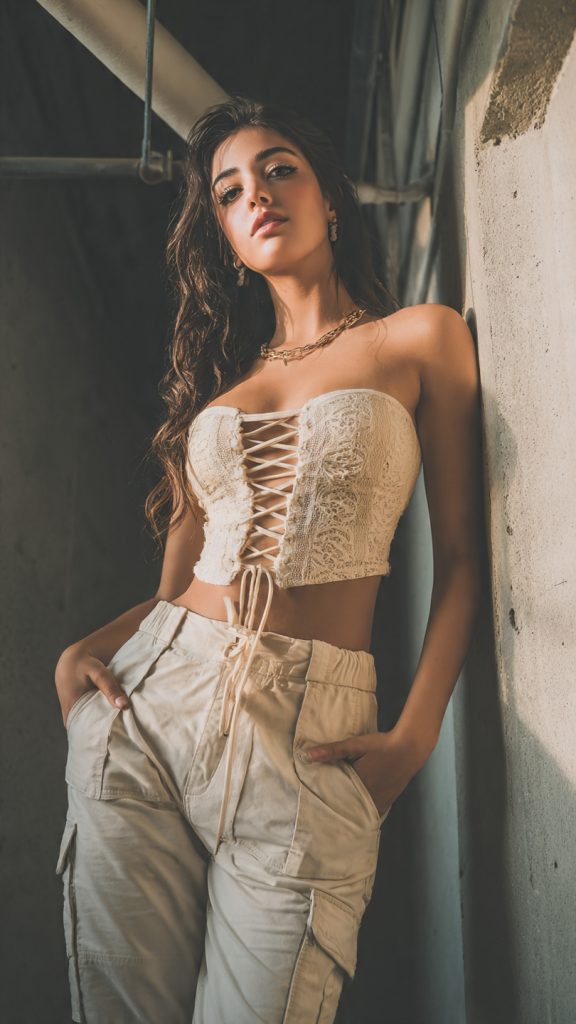 A lace-up or corset-inspired top draws attention with its detailed front and structured fit. It enhances your shape while adding a bit of drama to the overall outfit. High-waisted pants complement the look by lengthening the legs and balancing the fitted upper half. Worn with heels and confident styling, this pairing delivers a strong, polished appearance that fits seamlessly into modern Baddie Summer Outfits.