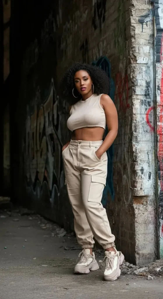 Cargo pants bring a cool, laid-back vibe that blends comfort with street style. When matched with a fitted crop top, the outfit feels balanced and modern. The relaxed fit of the pants keeps things practical, while the shorter top adds shape and definition. Complete the look with sneakers and bold hoops to lean into that urban aesthetic. It’s a confident choice that fits right in with today’s most popular Baddie Summer Outfits.