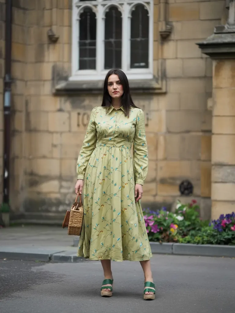 Botanical Charm in a Soft Green Midi