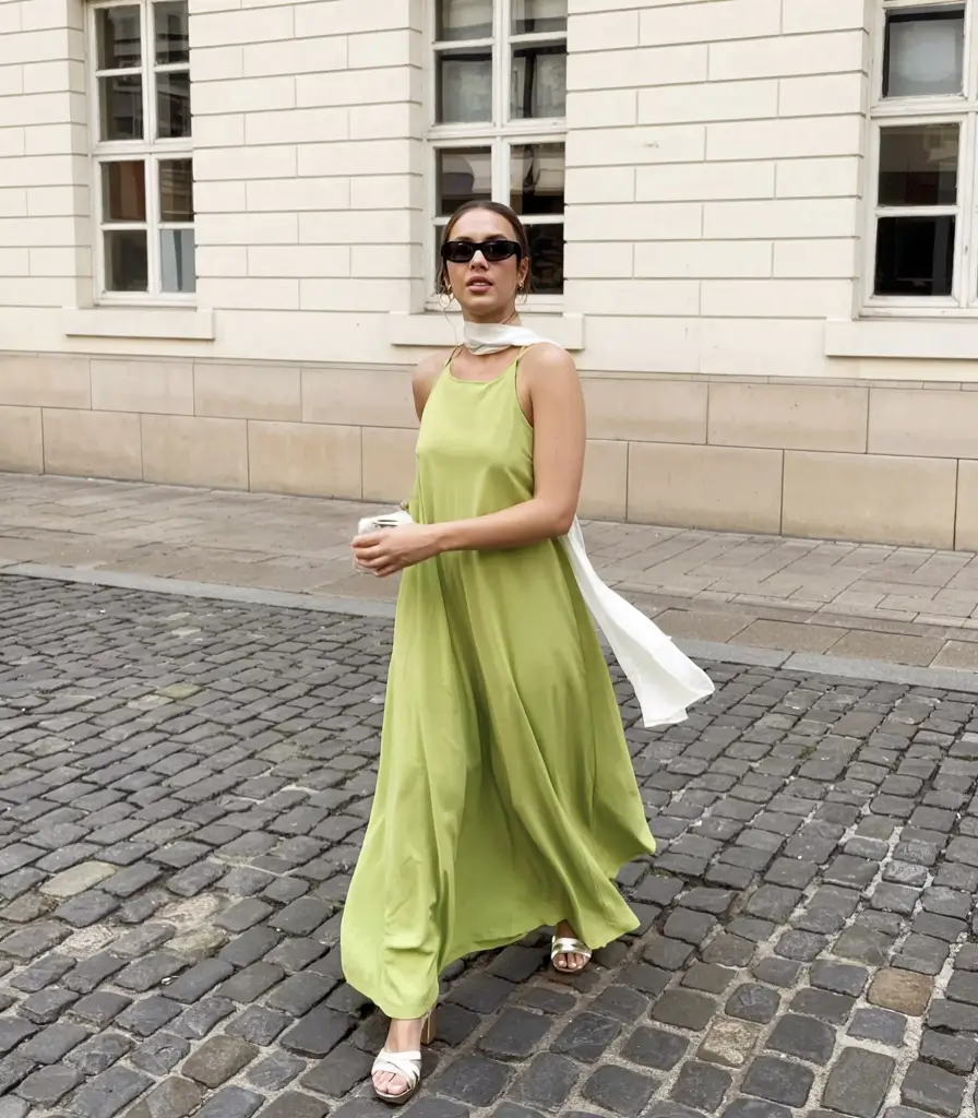 Soft green dresses with fluid fabrics offer ease and comfort for city weddings, courthouse ceremonies, or intimate spring events. This casual yet polished style fits seamlessly into the spring wedding guest outfit category.