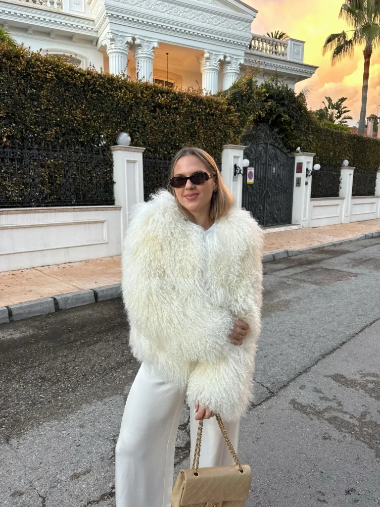 A bold fuzzy coat is both practical and stylish during winter. It offers warmth while instantly making an outfit feel complete. This look works well for casual meetings, coffee outings, or travel days around the city. Depending on the plan, it can be styled with boots or sneakers for comfort and ease.