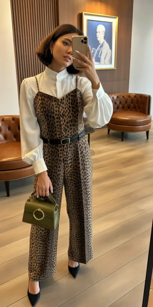 Animal print returns in a more refined way for 2026. Paired with crisp, neutral pieces, leopard print feels controlled rather than overpowering. The outfit balances boldness with structure, making it surprisingly versatile.