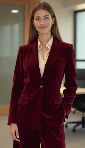 A velvet power suit in deep shades like emerald or burgundy instantly elevates your winter wardrobe. Layer it over a silk blouse for texture and warmth. Perfect for office wear or evening events, this outfit blends sophistication with a touch of festive flair.