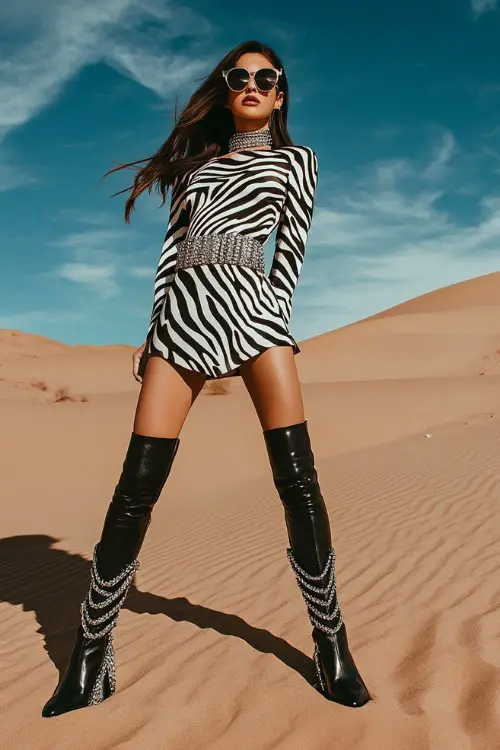 2. Zebra-Print Mini Dress with Statement Boots