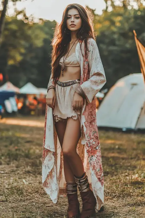 These 20 Coachella-Ready Outfits are designed for warm weather and long days outside. Many of the looks combine flowy fabrics, western boots, layered jewelry, and lightweight pieces that are easy to move in. Each outfit brings a different mood, but they all focus on comfort, confidence, and summer energy under the desert sun.