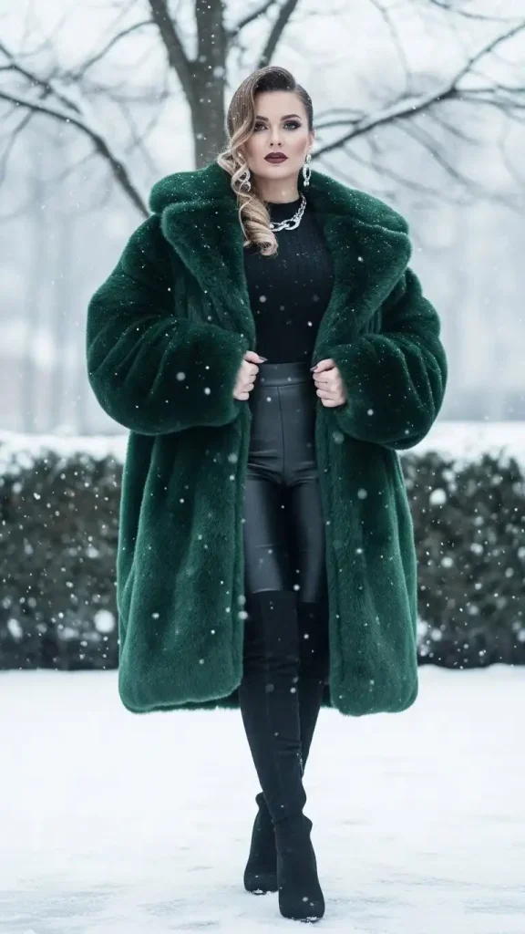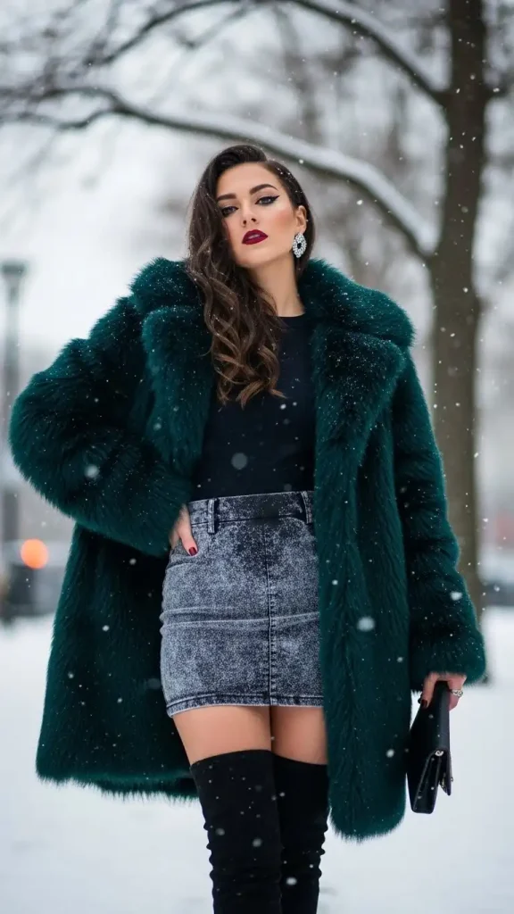 A bold faux fur coat instantly brings drama and luxury to winter dressing. Whether colorful or patterned, it becomes the centerpiece of the outfit. Keeping the rest of the look simple allows the texture to shine. Among Cold Winter Outfits for Baddies, this one delivers maximum impact and timeless glamour, especially for night outings.