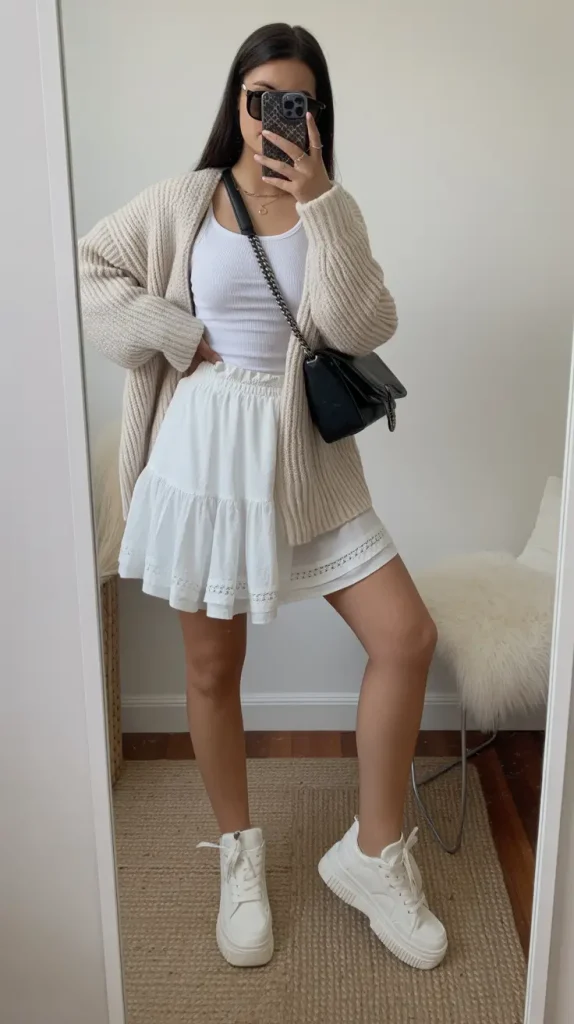 Light layering options help adjust to cooler evenings while maintaining the outfit’s gentle aesthetic.