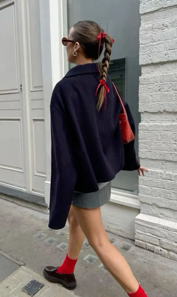 A red bow is a playful yet subtle accessory. Wearing it in your hair adds a touch of charm, and you can experiment with different sizes and placements. It’s a sweet way to mark Valentine’s Day without drawing too much attention or overpowering your outfit.