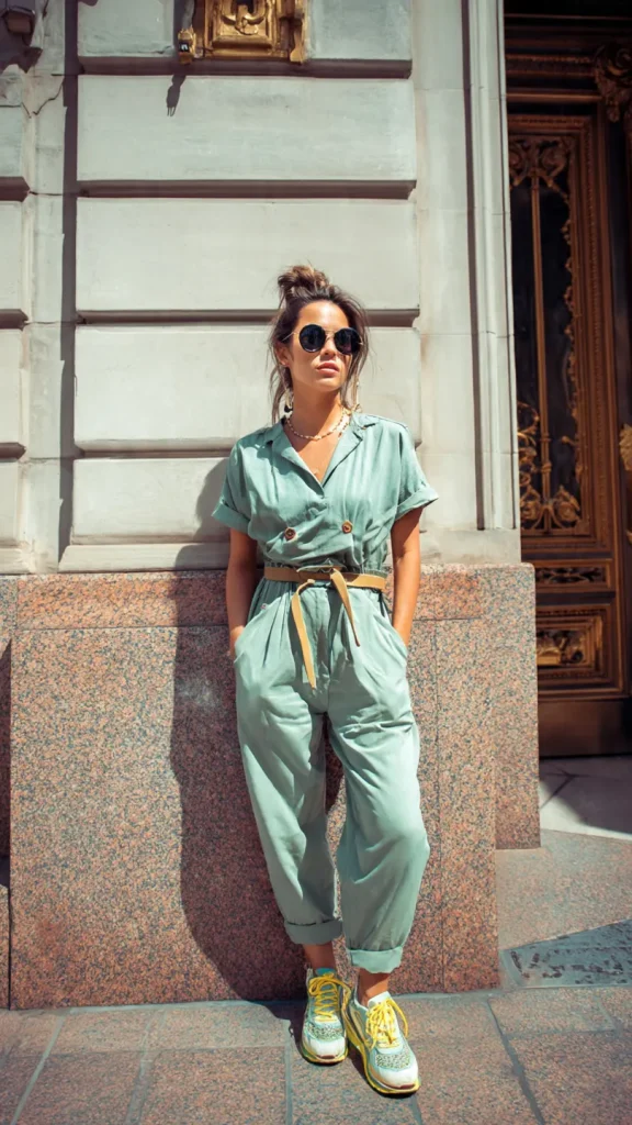 Sneakers instantly make the outfit feel relaxed and practical for long hours on your feet. The jumpsuit keeps everything cohesive, so the look never feels messy or unfinished. This pairing is comfortable yet still styled, making it one of the most wearable Jumpsuit Outfit Ideas for daily life.