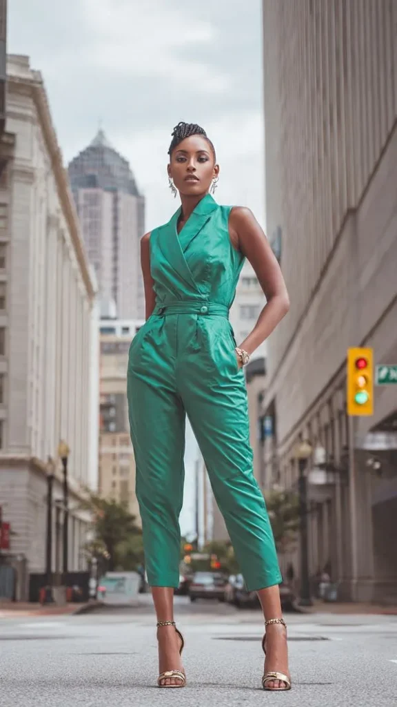 Structured tailoring instantly elevates the appearance and makes the jumpsuit feel refined. Heels lengthen the leg line and enhance the overall silhouette. The final look feels sleek, confident, and appropriate for formal settings.
