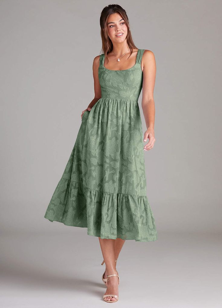 Tea-length dresses offer a timeless and welcoming feel, especially when details remain understated. Small elements like gentle pleats or soft ties add interest without overpowering the outfit.