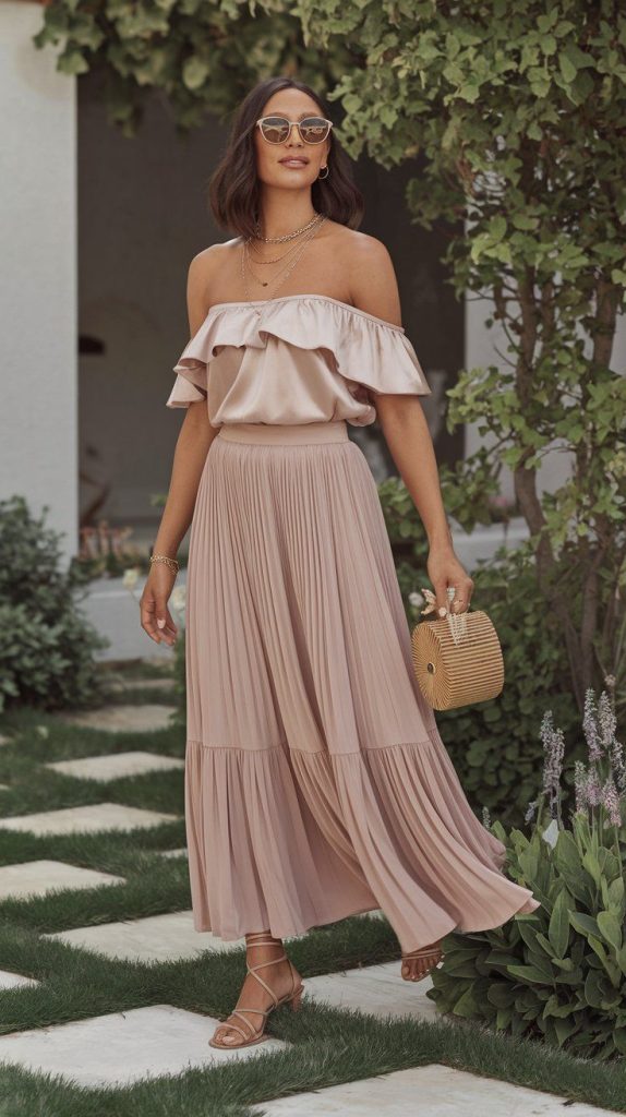 A flowing skirt combined with a soft blouse creates a look that feels elevated yet approachable. The skirt adds movement and grace, while the blouse provides just enough structure to keep the outfit polished.
