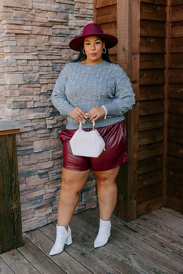 This Plus Size Outfit blends bold color with textured fabrics for a standout look. Leather shorts paired with a knit top create contrast and visual interest, offering a confident and fashion-forward style suitable for evening events or festive occasions.