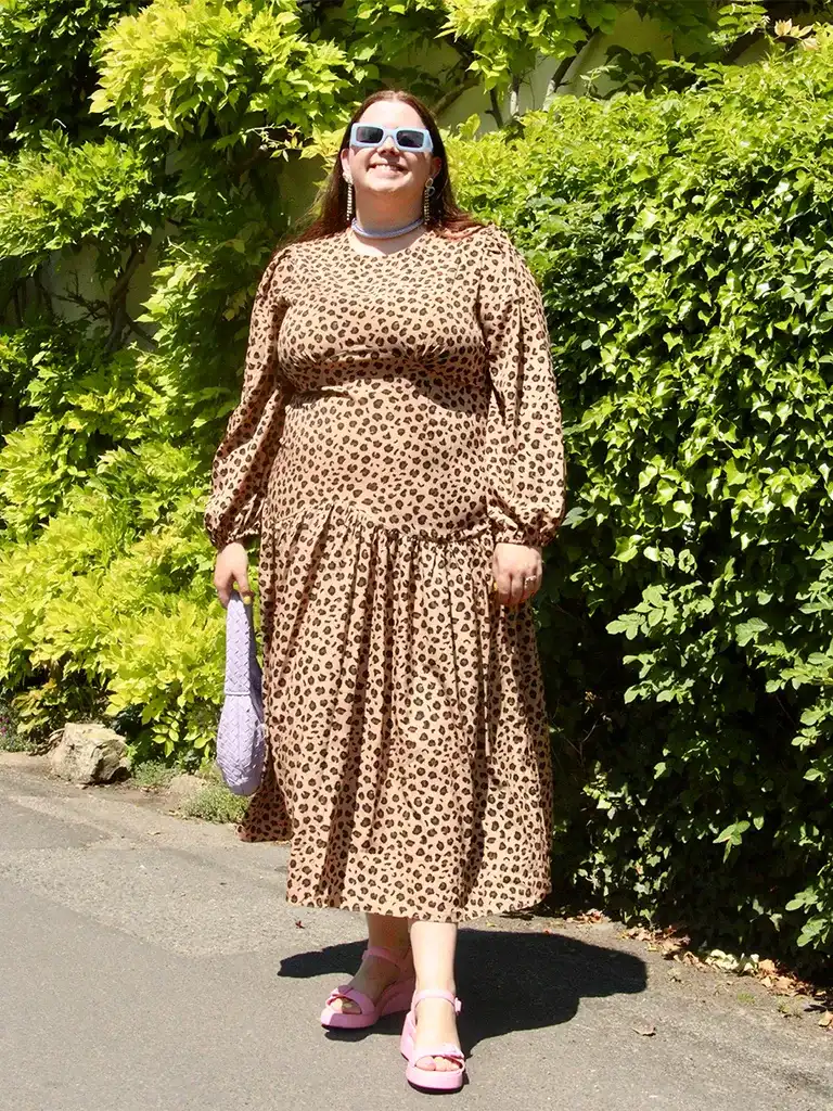 Playful Leopard Print Midi Dress for a Fun, Daytime Wedding Guest Look