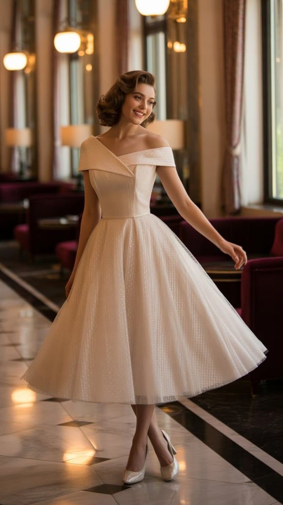 8. Tea-Length Dress With Vintage-Inspired Details