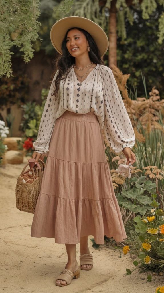 Absolutely. A midi skirt paired with a soft blouse or a knit top with a flowing skirt creates a balanced, relaxed, and elegant look perfect for rustic settings.